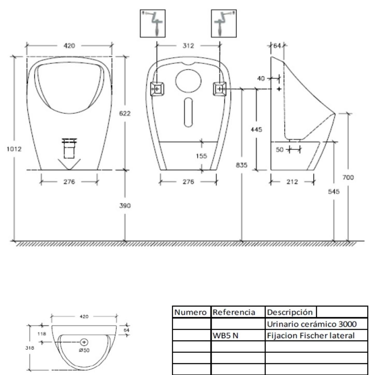 y métodos de ensayo, UNE-EN 80:2002 Urinarios murales. Cotas